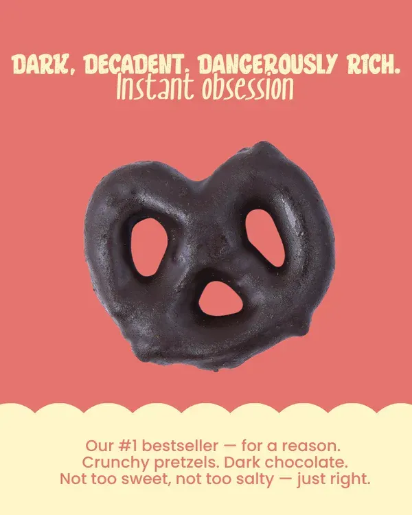 A timeless combination of salty crunch and rich chocolate—Dark Choco Pretzels are your new go-to indulgence.