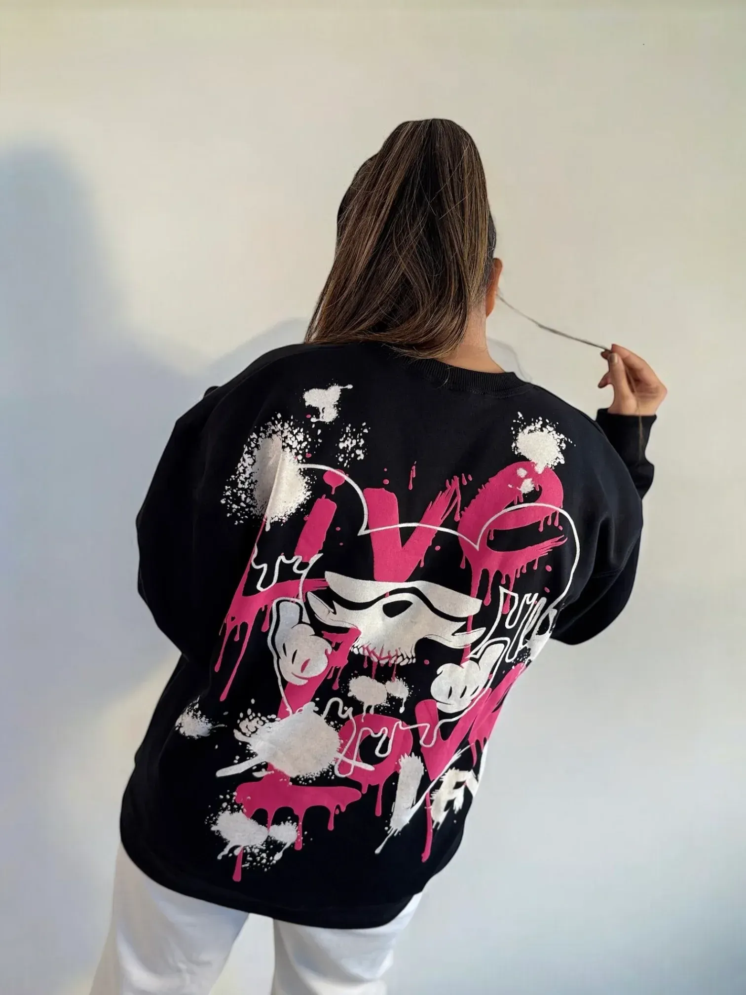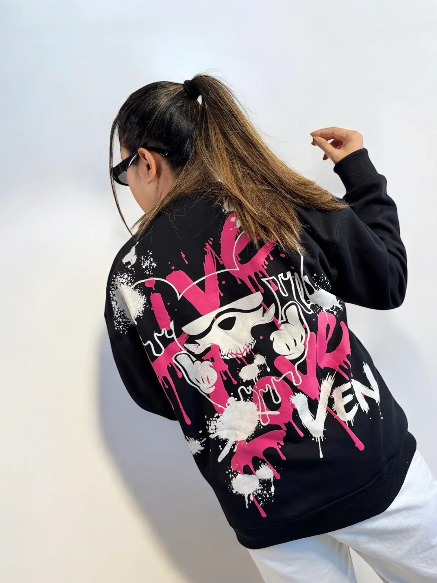 A bold and comfortable oversized sweatshirt featuring artistic graffiti prints - designed for expressive streetwear lovers seeking effortless comfort and individuality.