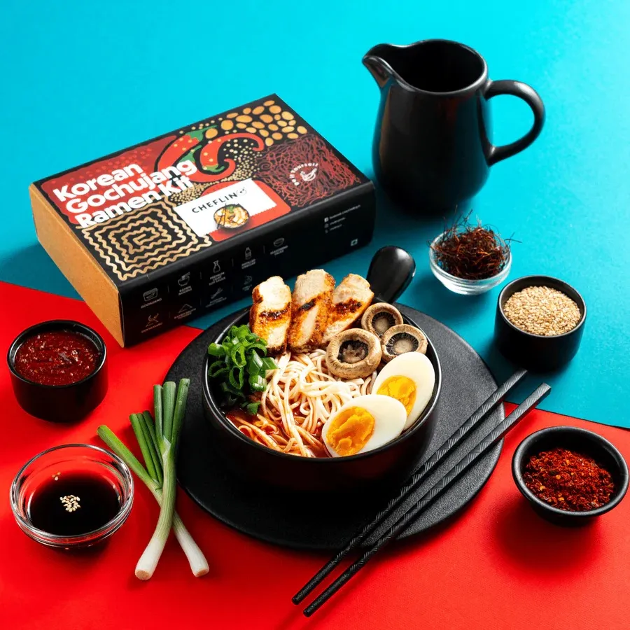Overview: Embark on a culinary adventure with our Korean Gochujang Ramen Starter's Kit - your passport to the bold and vibrant flavours of Korea! Specially designed for couples or small gatherings of two, this kit brings authentic Korean-style ramen right into your kitchen.