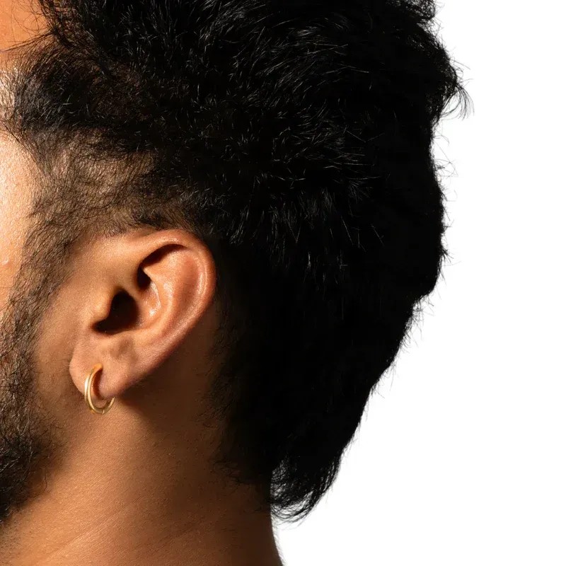 The Pressing Hoop (Gold) merges modern design with timeless sophistication. Crafted from recycled stainless steel and coated with 18K gold vermeil, this unpierced hoop offers effortless elegance and durability. Waterproof, hypoallergenic, and built for everyday confidence, it’s your go-to piece for any look.