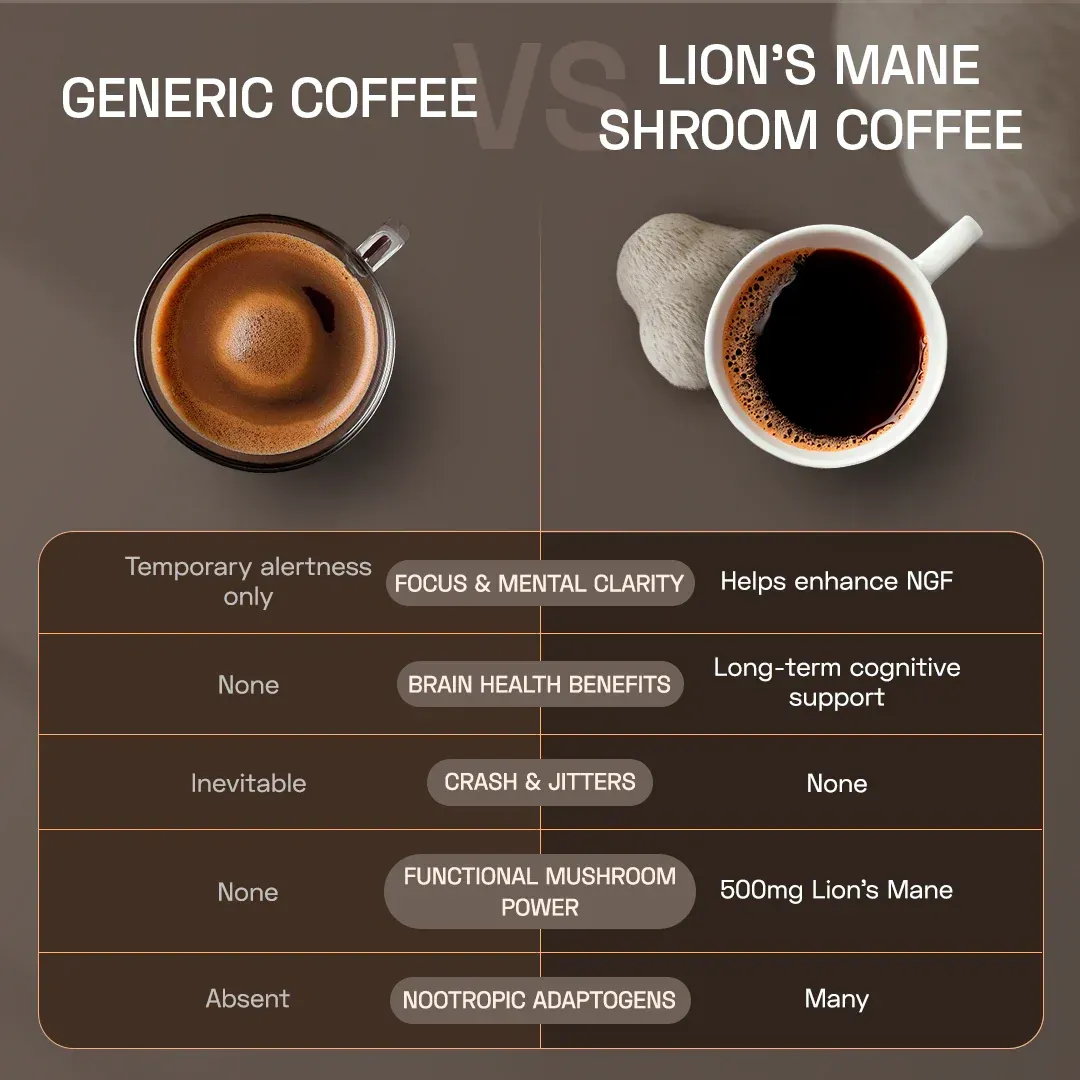 Power up your mind with Lion’s Mane Shroom Coffee - a smooth, adaptogenic blend infused with nootropic mushrooms, ashwagandha, and MCTs for sharp focus and calm energy.