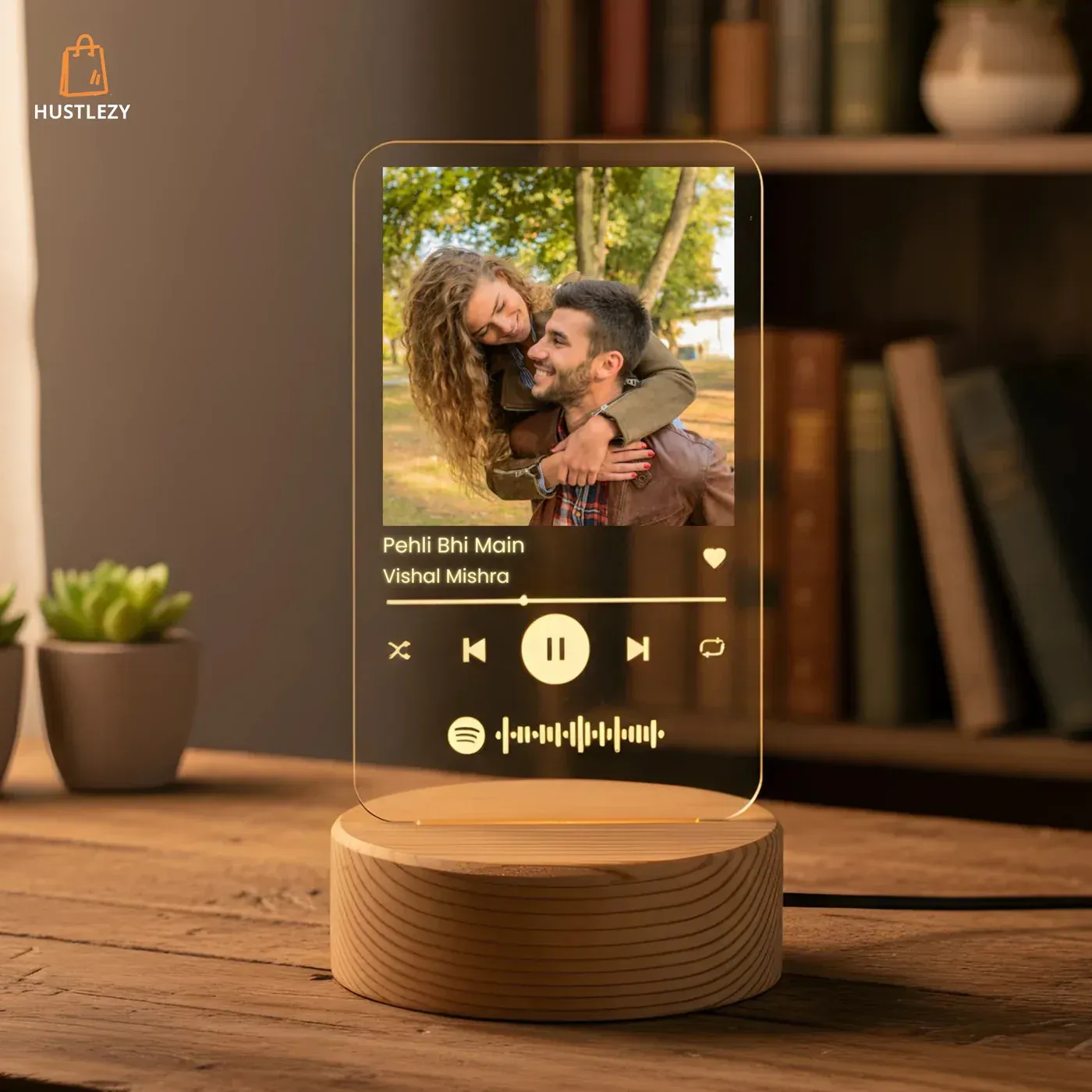 The NightShot – Spotify LED Lamp is a personalized keepsake that transforms your favorite song, photo, and memory into a stunning illuminated artwork. Perfect for gifting or decorating your space, its sleek acrylic plaque rests on an elegant wooden LED base, glowing gently to set the perfect mood. Whether it’s your anniversary song or a special tune that defines a moment, this lamp brings music, love, and light together beautifully.
