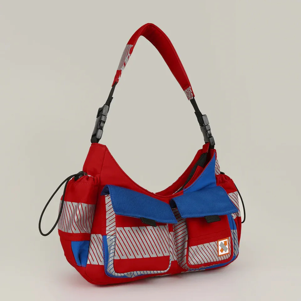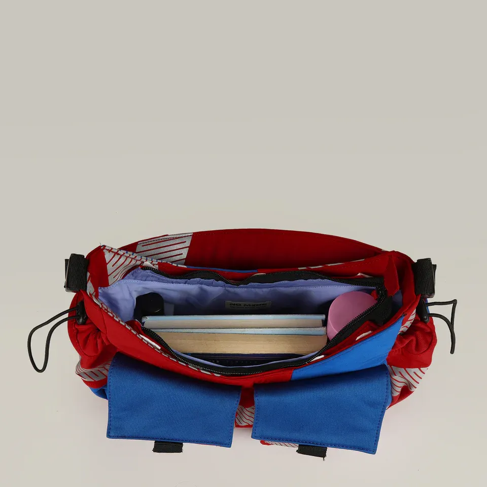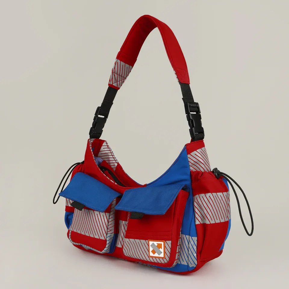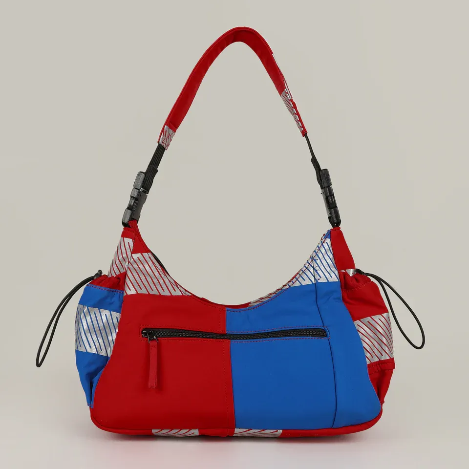 Meet the Strobe Dual Handle Bag - upcycled from pre-loved denim and workwear. With twin front and scrunched side pockets, it keeps essentials handy.