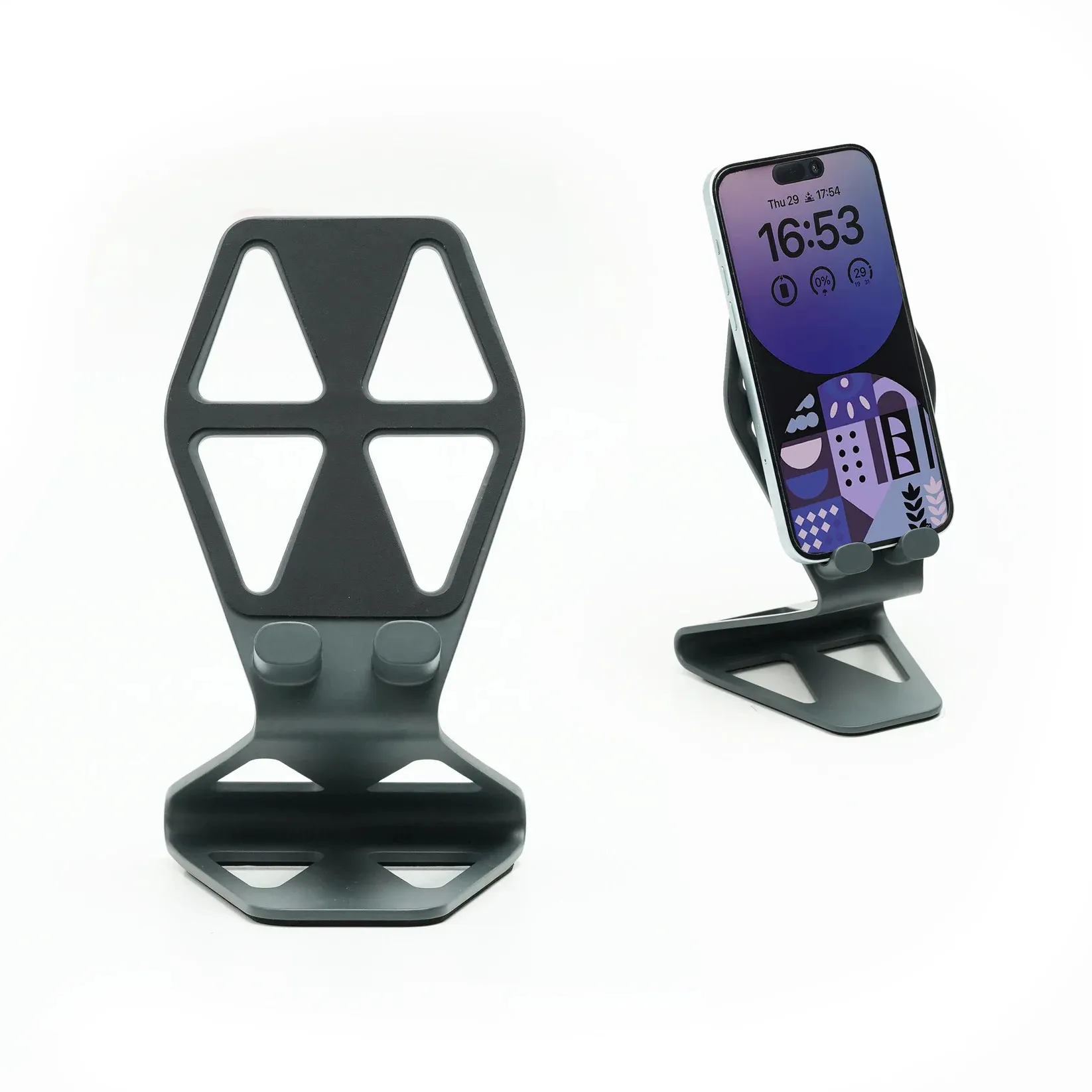 A desktop stand for mobile and tablet. Designed with the perfect angle for video conferencing and everyday viewing.