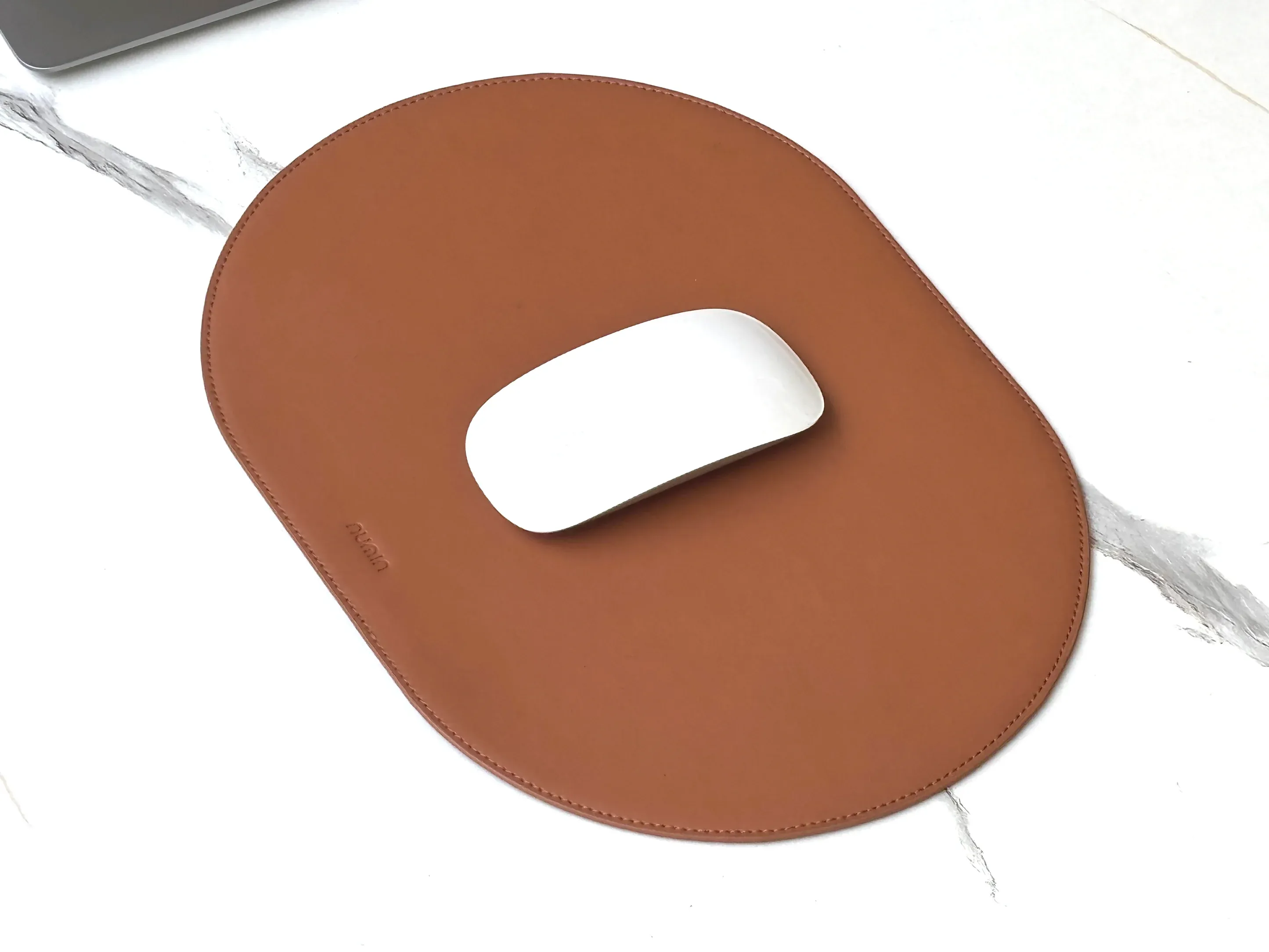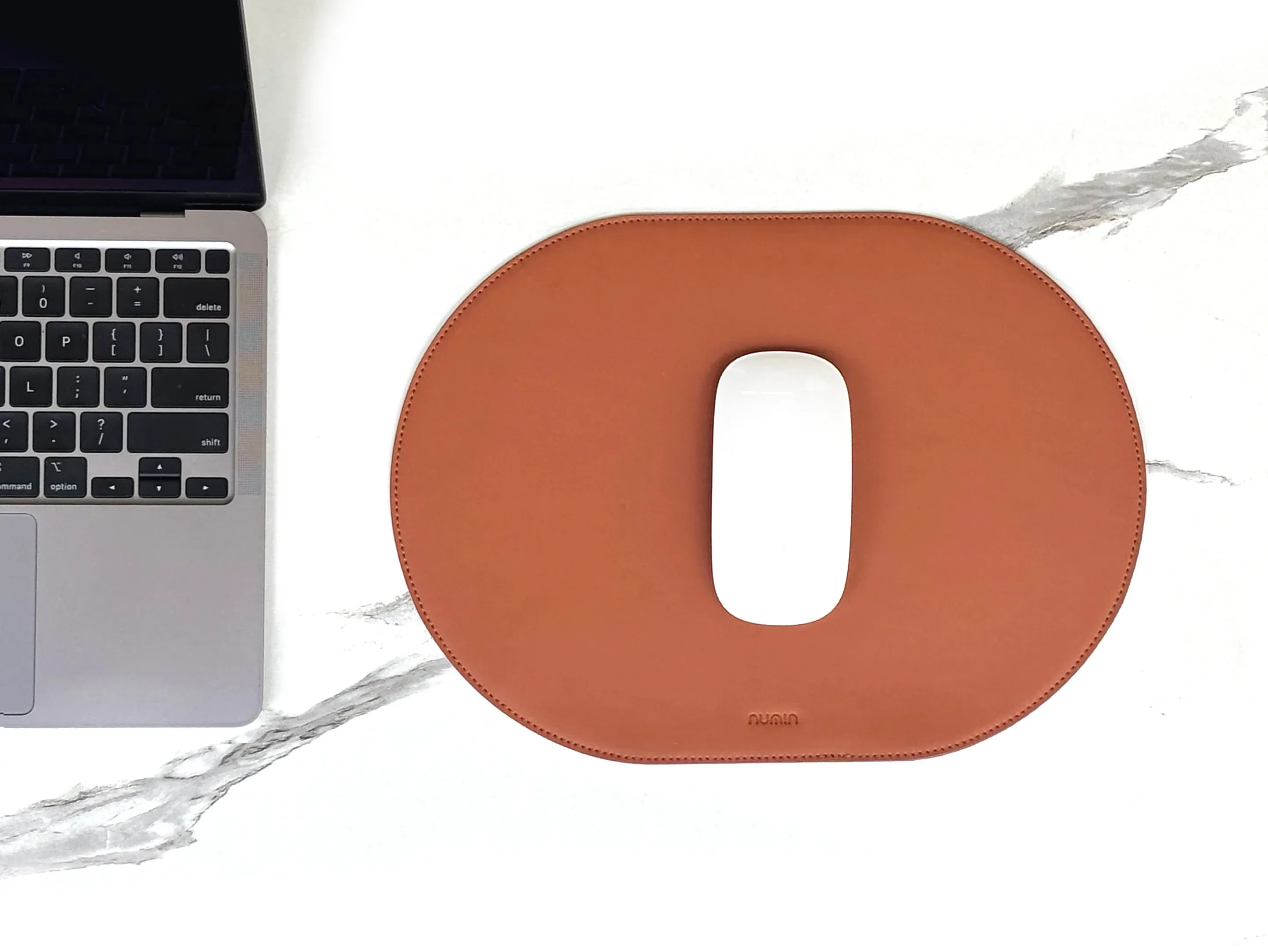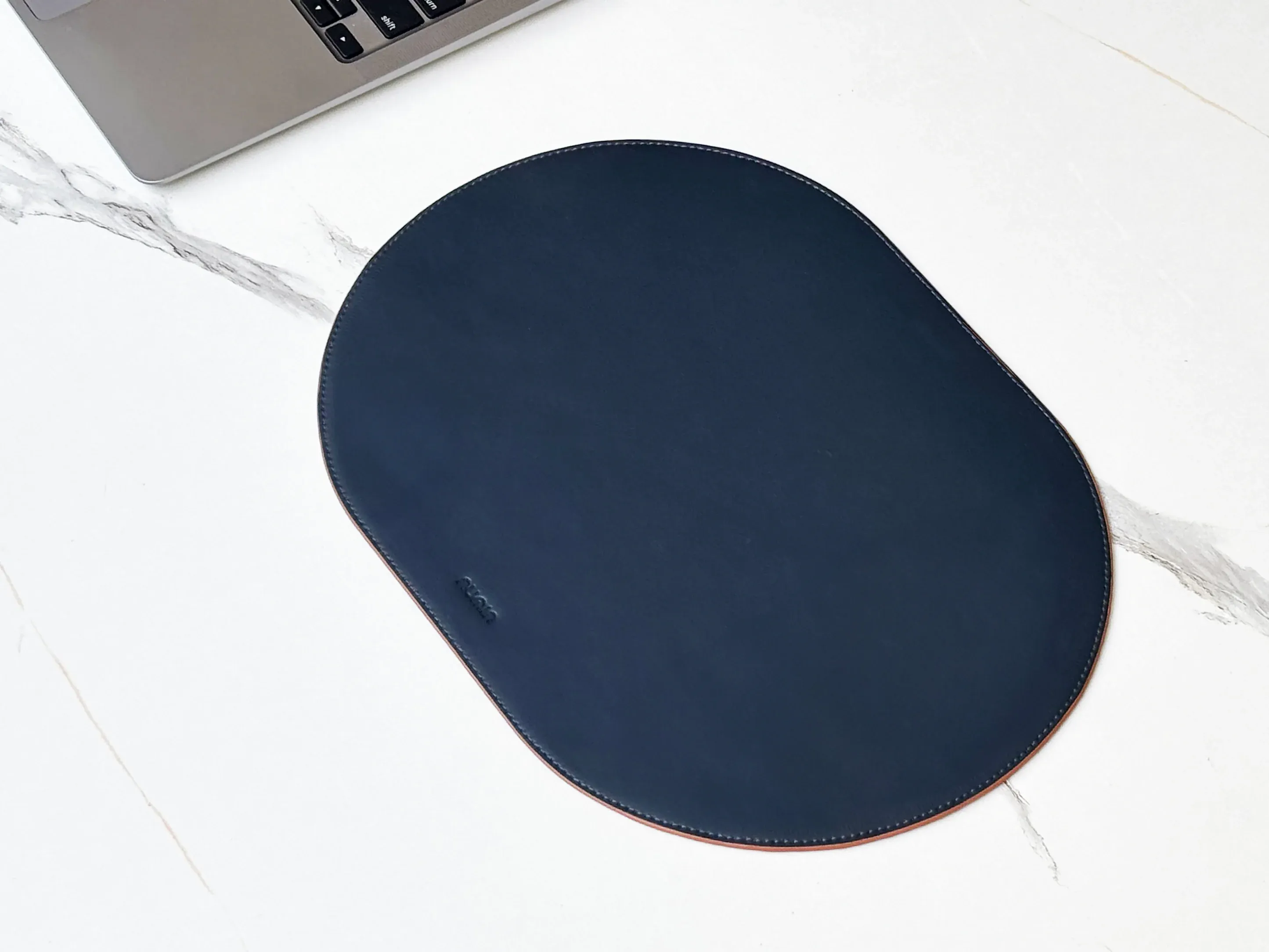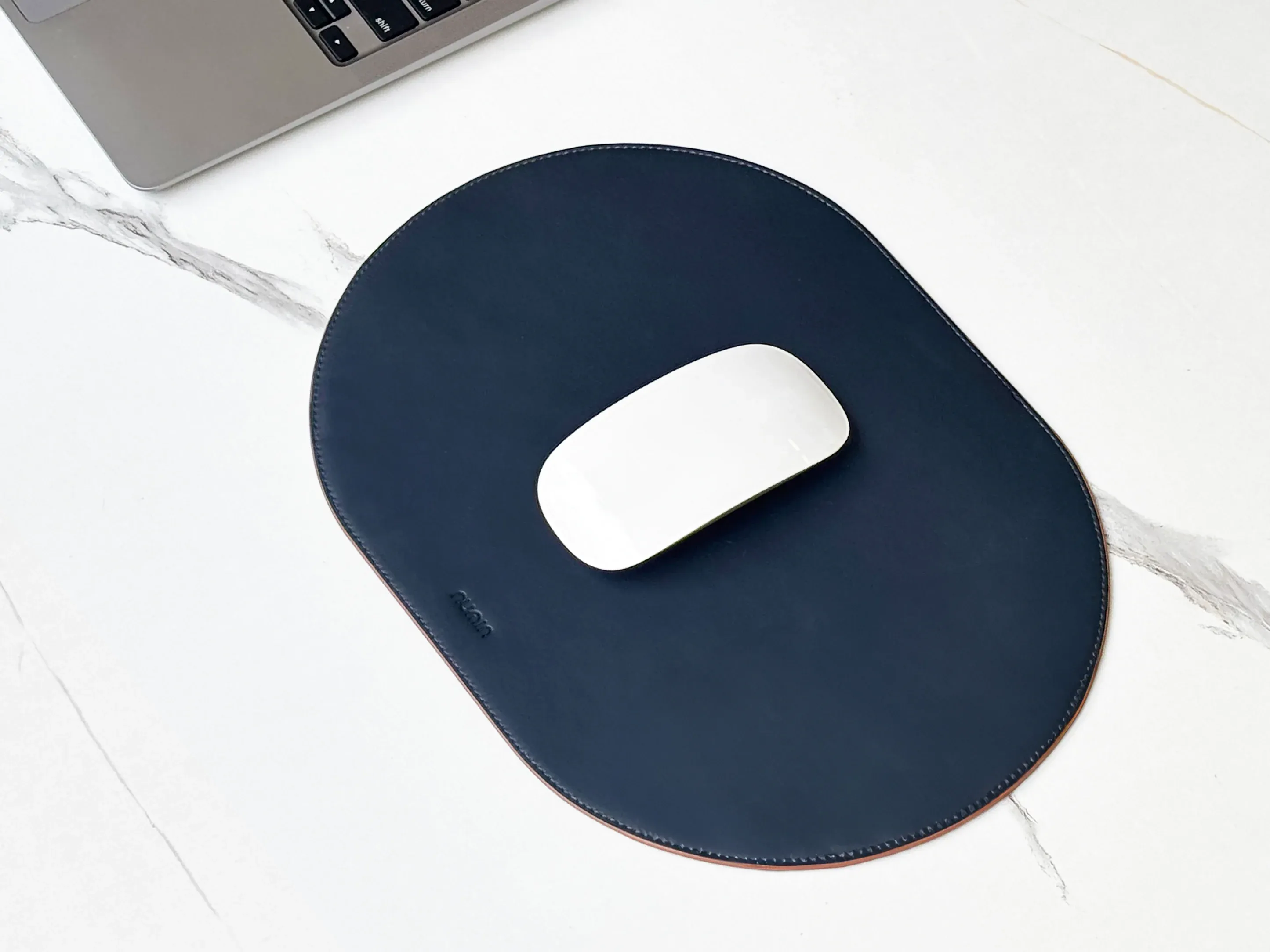 Upgrade your desk setup with this premium 12 x 9-inch capsule-shaped mousepad, made from ultra-soft, padded vegan leather.