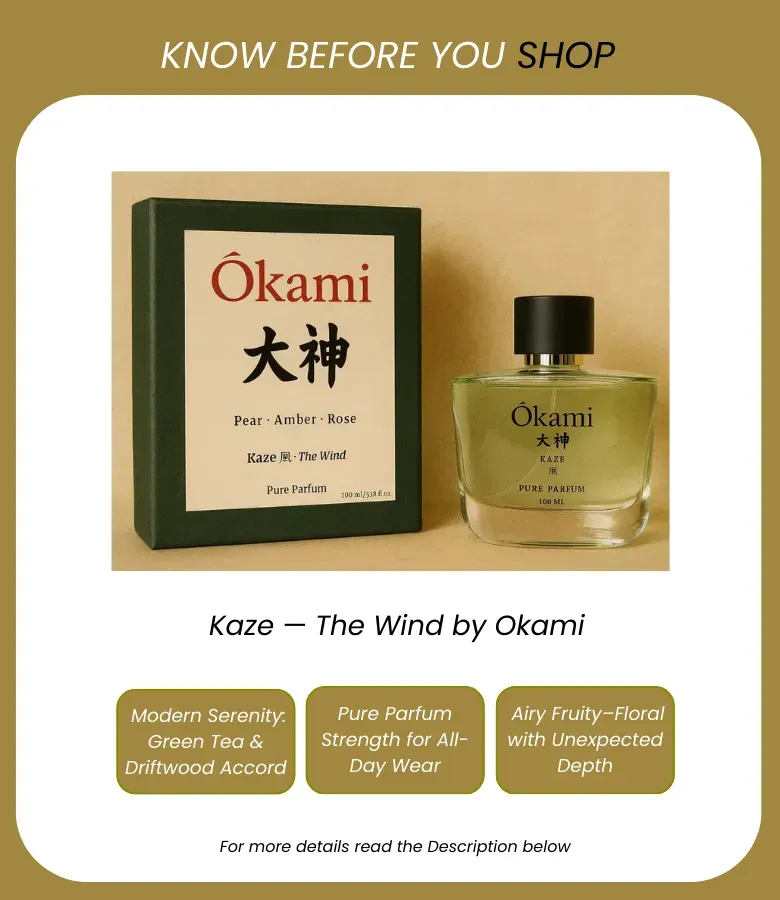 A soft, smooth blend of fruit and floral notes that works beautifully for office settings, casual meetups, and everyday wear. Kaze – The Wind is a weightless, airy composition of citrus, green tea, and driftwood. Crisp, uplifting, and quietly powerful.