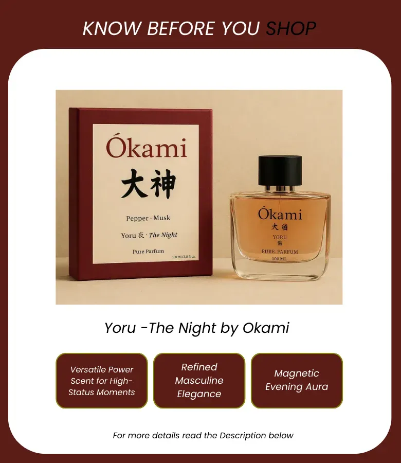 Yoru – The Night is a deep, mysterious scent with black pepper, incense, and smoky woods. Bold, sensual, and quietly magnetic.