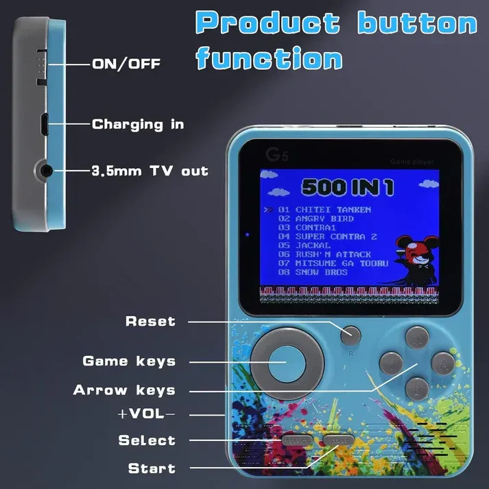 Relive the nostalgia of classic gaming with the Retro GameBox 500-in-1 — a premium handheld console packed with 500 timeless games. Designed for both kids and adults, it’s the perfect blend of fun, learning, and entertainment — anytime, anywhere.