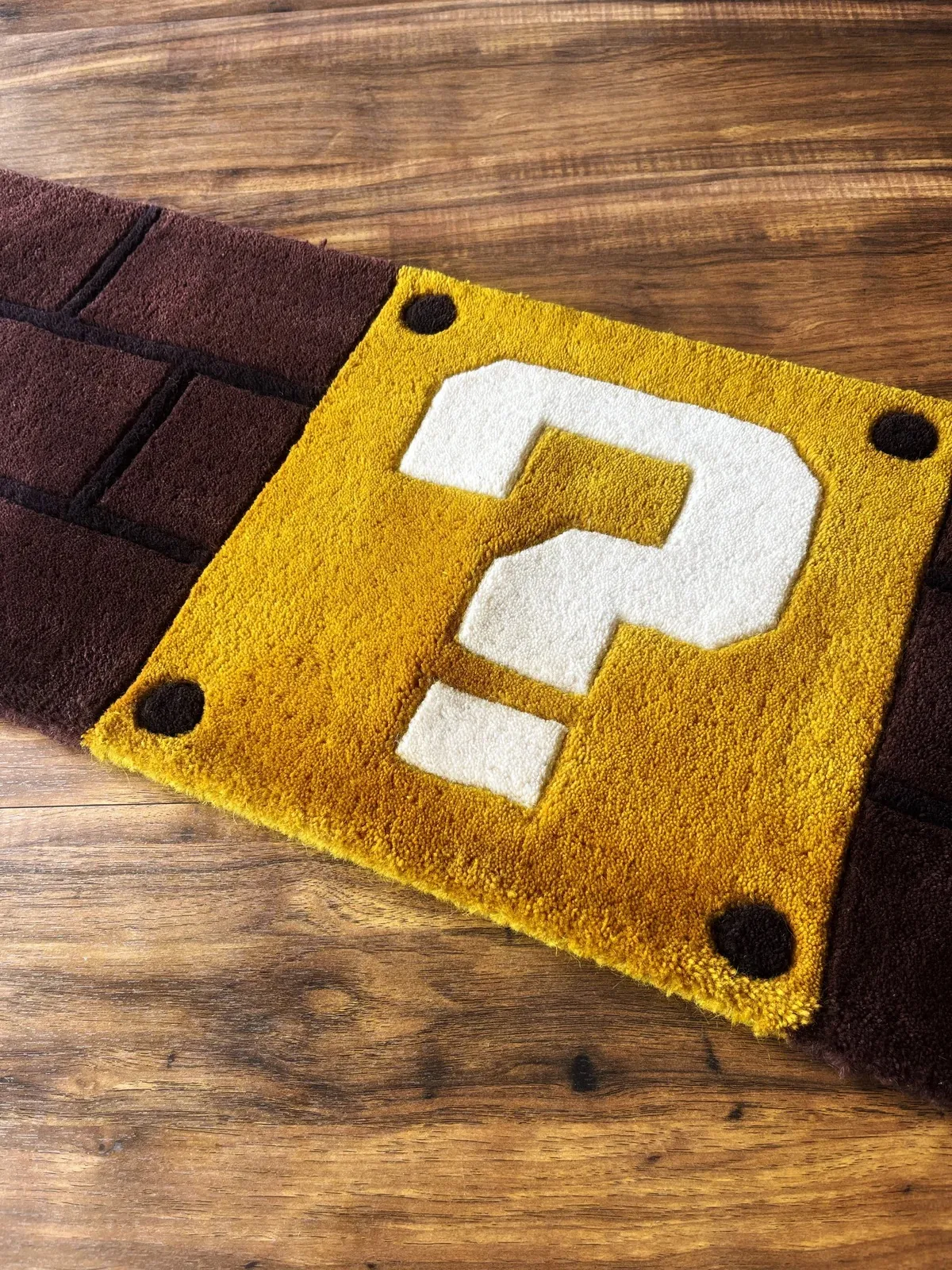Overview: Bring a touch of classic gaming into your space with the Mario Block Rug. Made from 100% New Zealand Wool and hand-tufted with a cut & loop pile style, this rug is soft, durable, and adds a playful charm to any room.