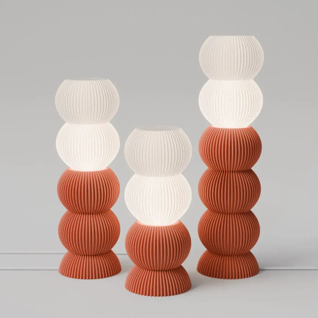 The STAK Rolli combines sculptural curves with modular design, giving you a bold yet versatile lighting solution. Build it your way—choose 1, 2, or 3-piece configurations, or stack up to six pieces for a taller statement.