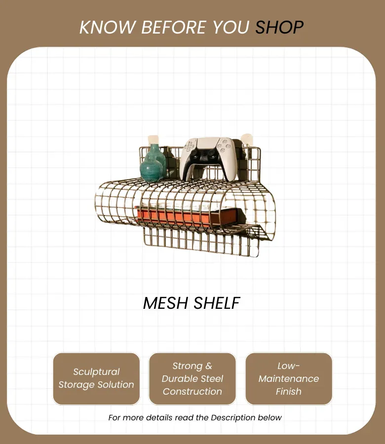 It’s a piece that combines functionality with artful form, allowing you to display decor, books, or essentials while adding character to your space.