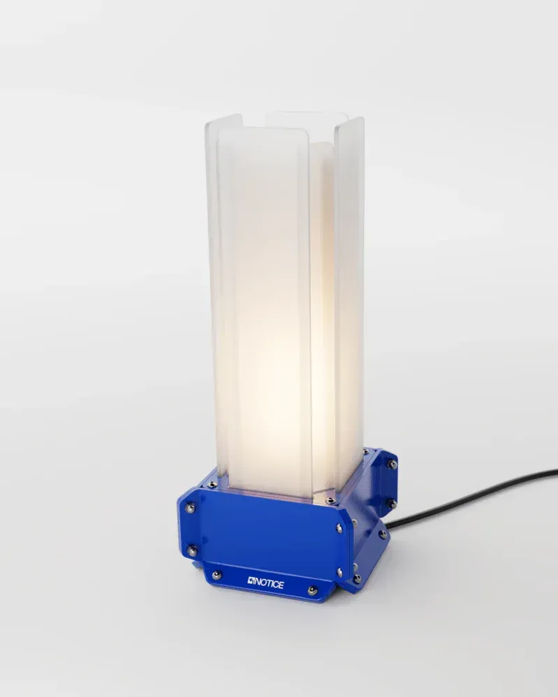 A modern sculptural light tower crafted to elevate ambience with a warm, radiant glow.