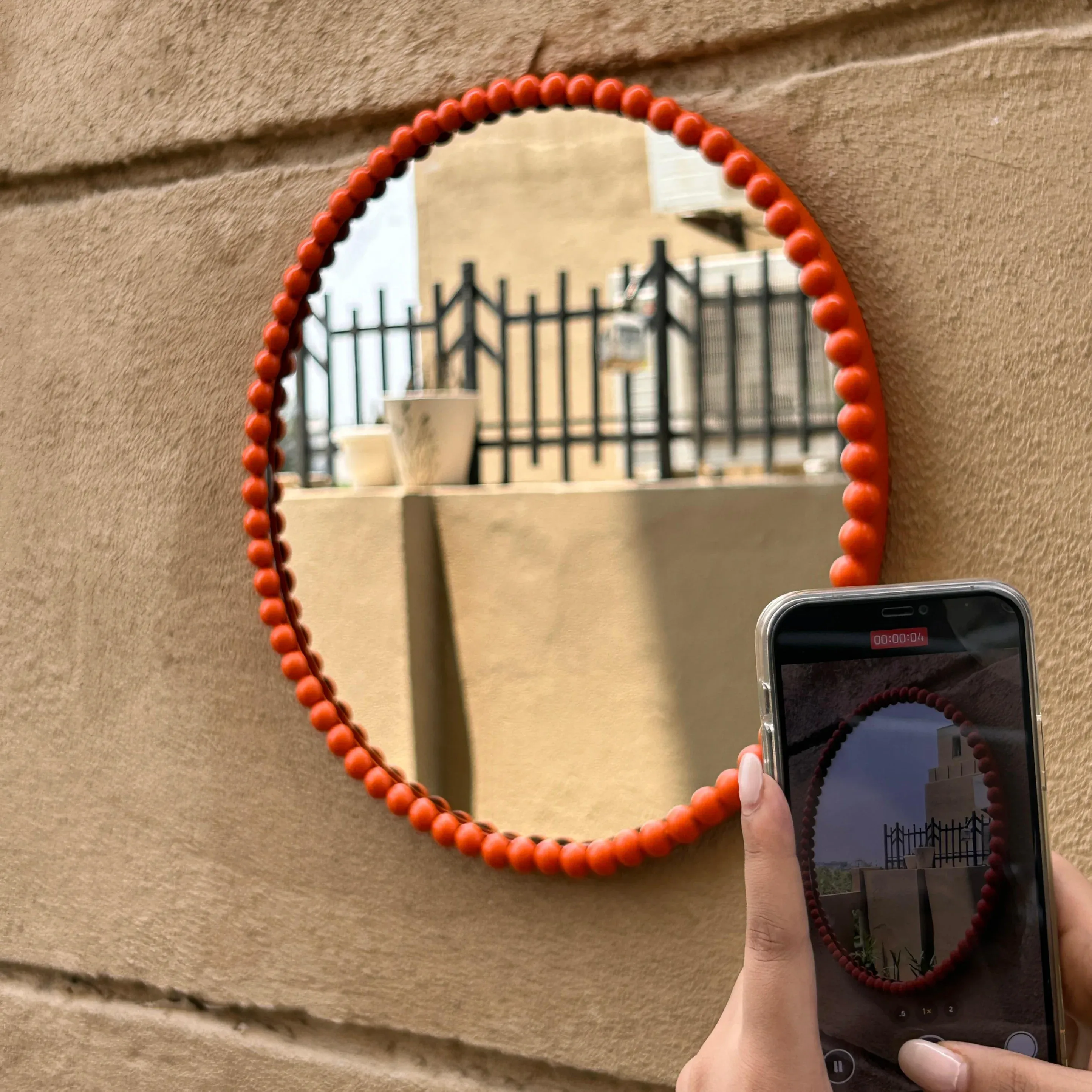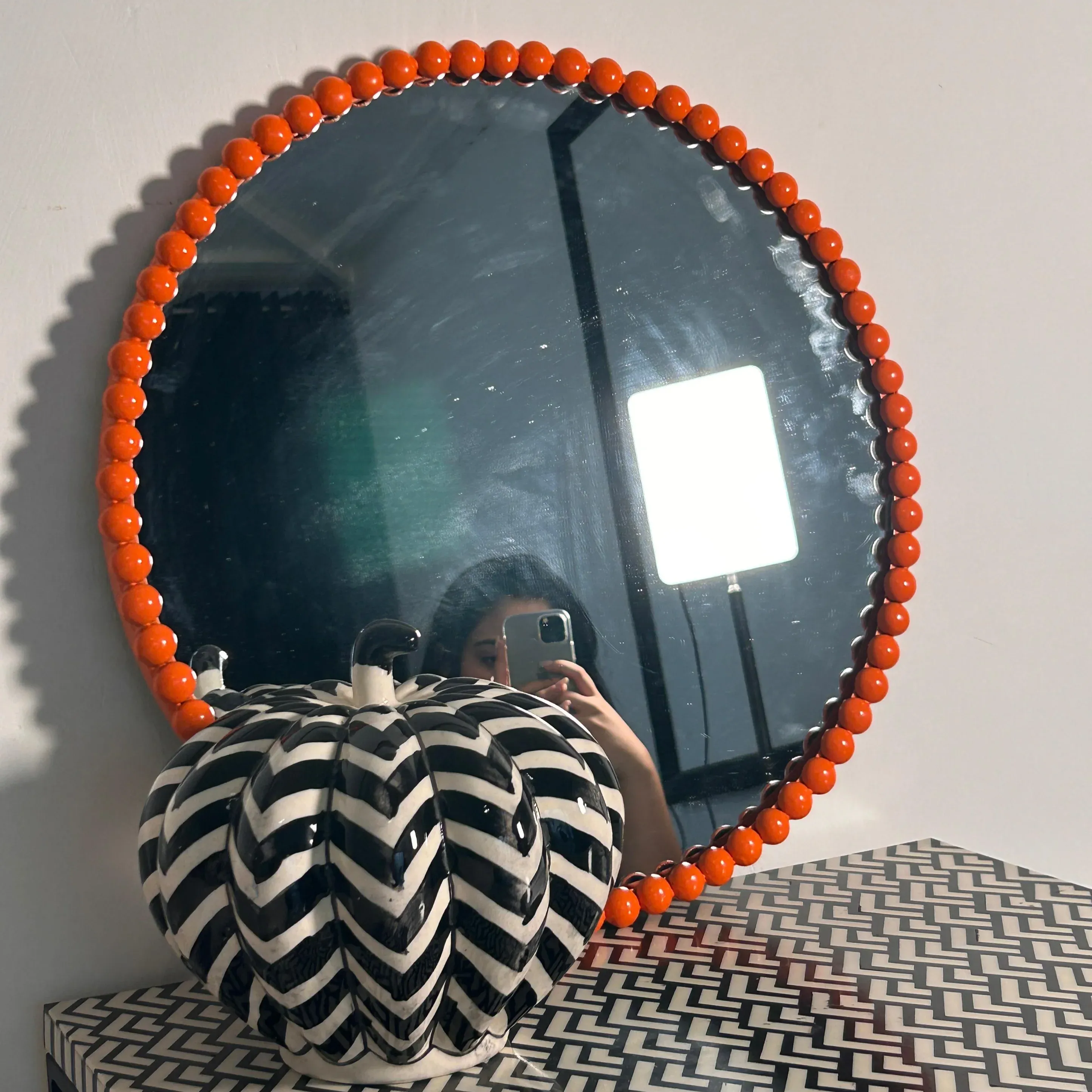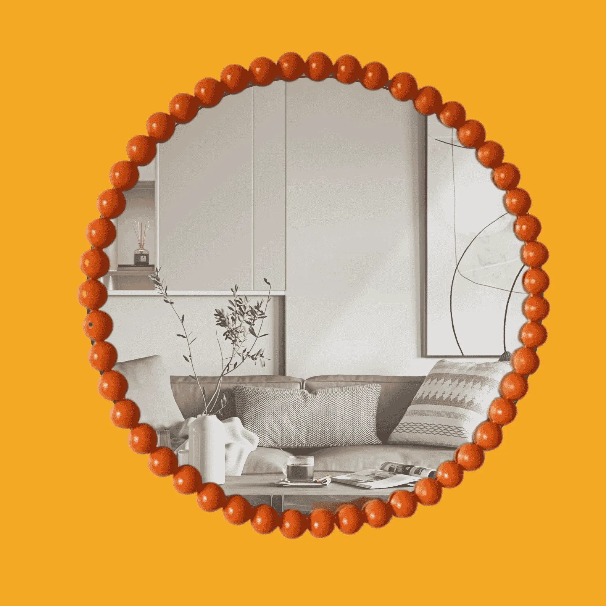 Why settle for ordinary when you can have a mirror that brings all the drama? The Dotted Mirror is here to steal the spotlight with its bold, playful studs framing a perfectly round reflection.