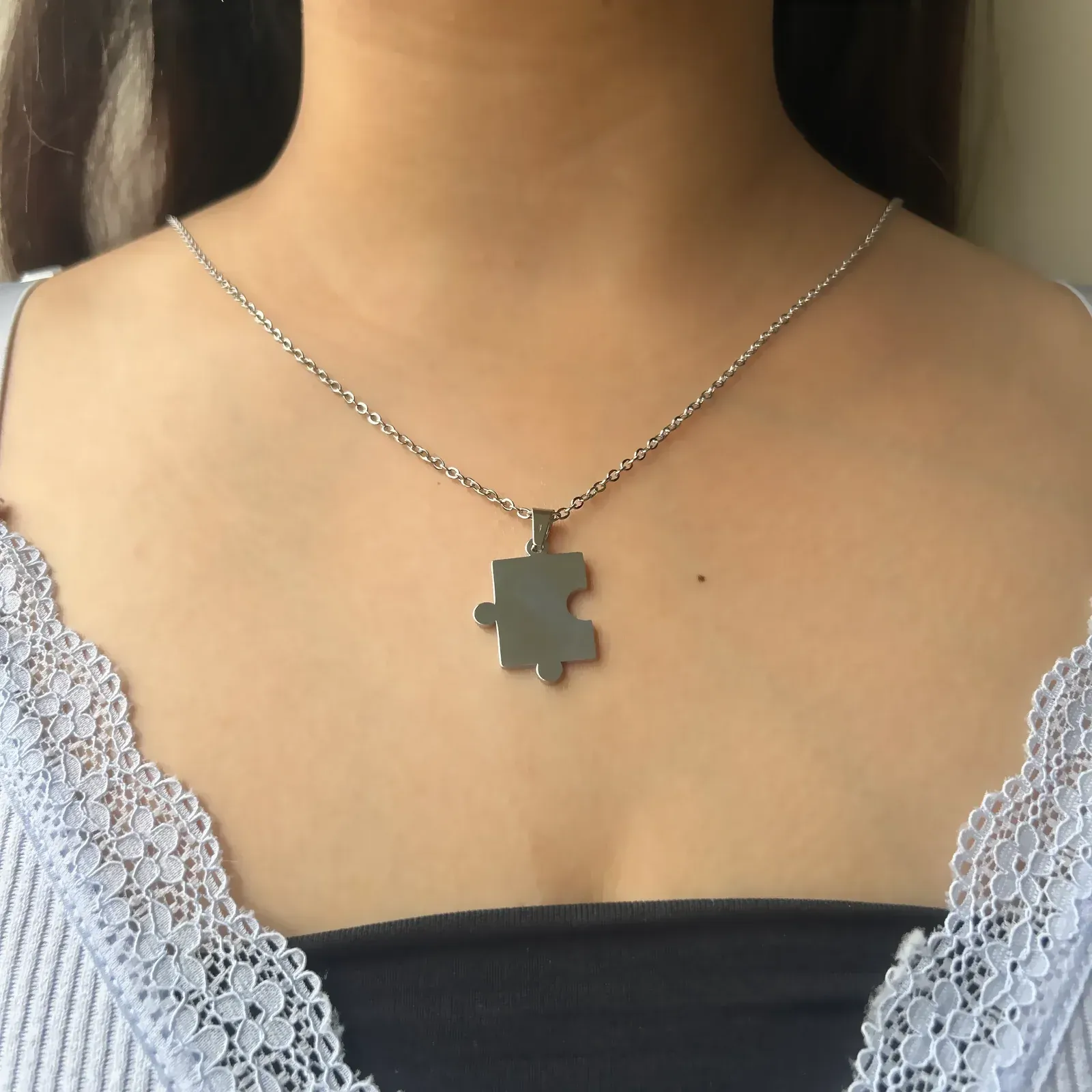 PERSONALISED PUZZLE NECKLACE SET OF 2 - 18K WHITE/GOLD-PLATED by Bria Jewels