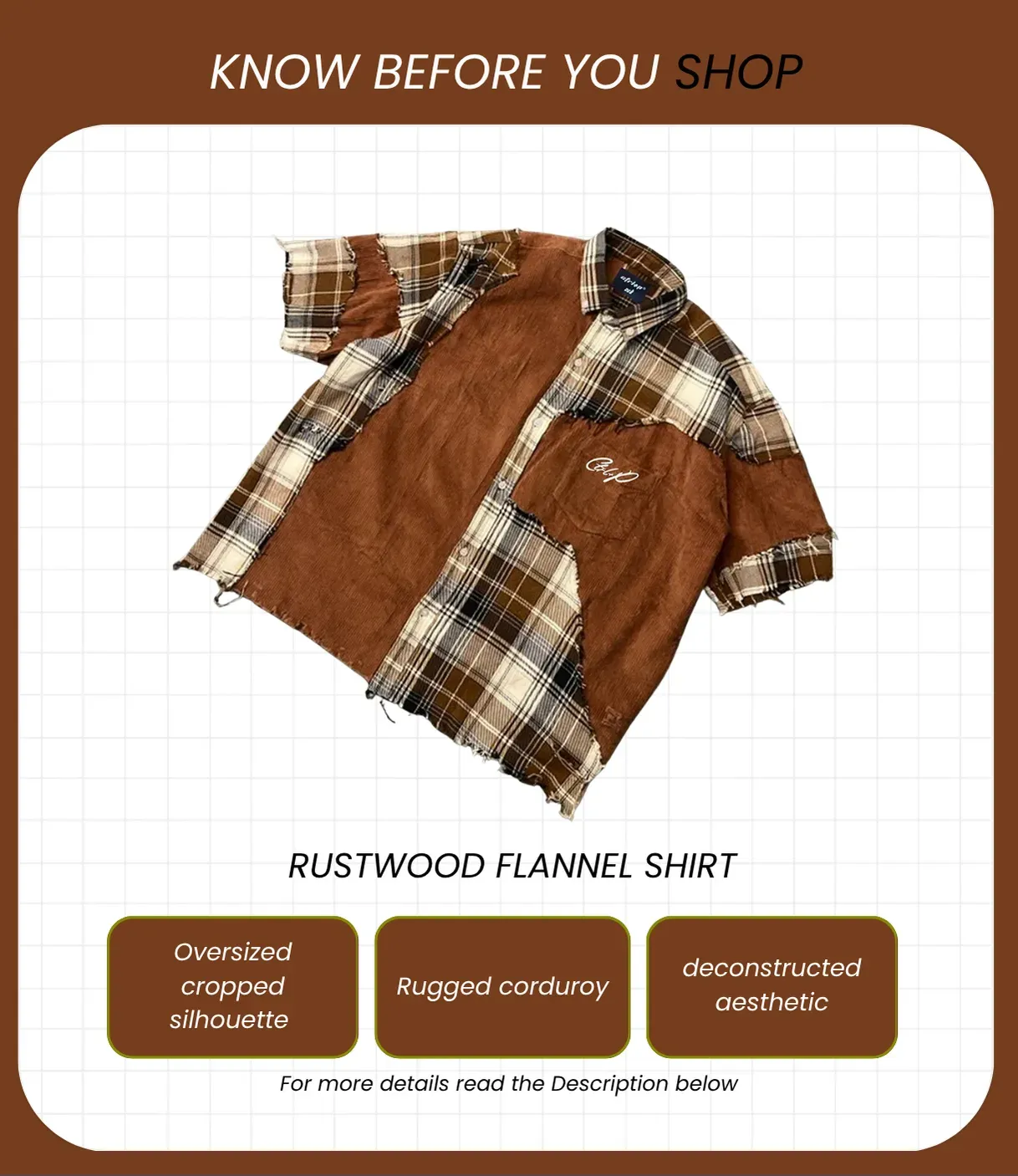 Introducing the Rustwood Flannel Shirt by Ctrl+P—a bold clash of rugged corduroy and soft flannel, built for those who like their streetwear with character. This is not your average button-up; it’s a walking statement piece.