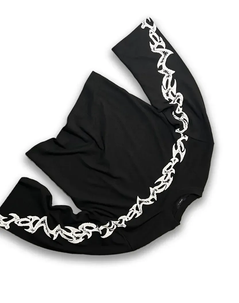 A futuristic oversized waffle-knit t-shirt designed for bold, tech-inspired streetwear looks.