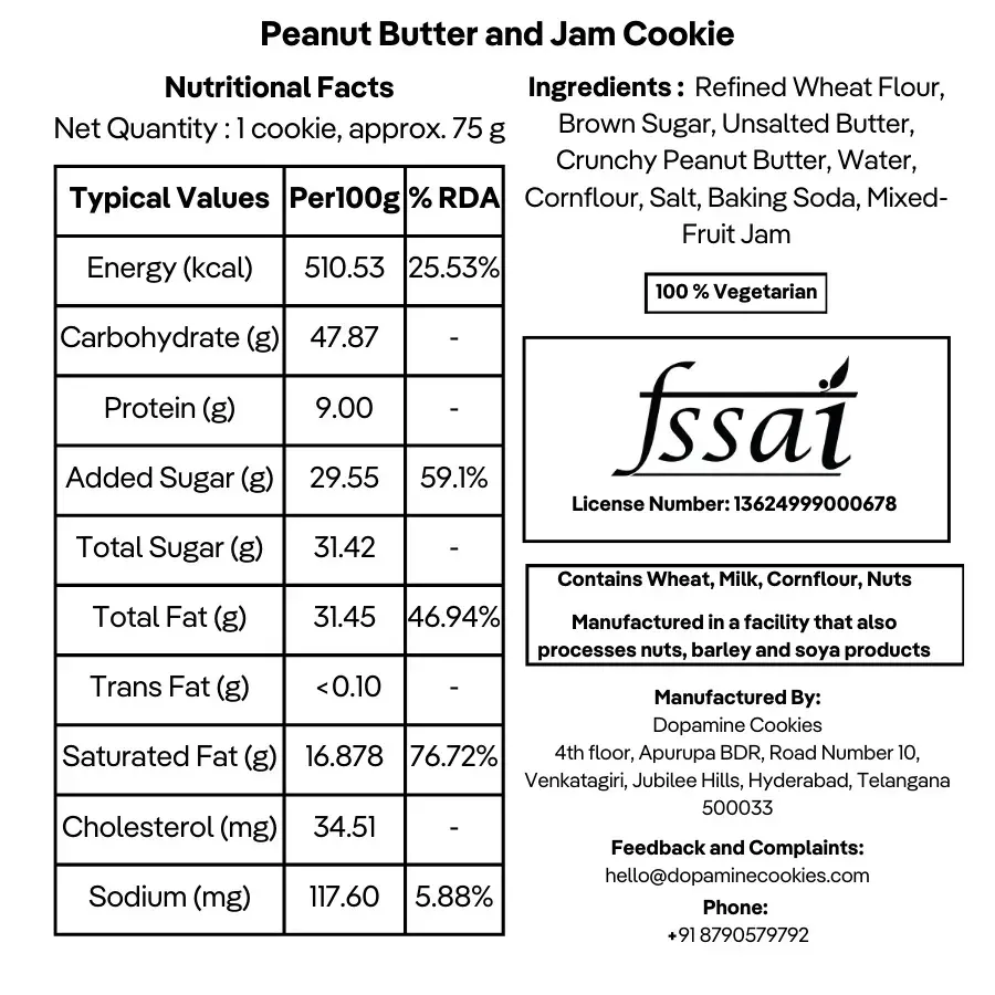 Overview: Experience a classic flavor pairing in every bite with our soft-baked Peanut Butter cookie, filled with a gooey center of Mixed-Fruit Jam. A nostalgic treat that blends nutty richness with fruity sweetness, perfect for all ages.