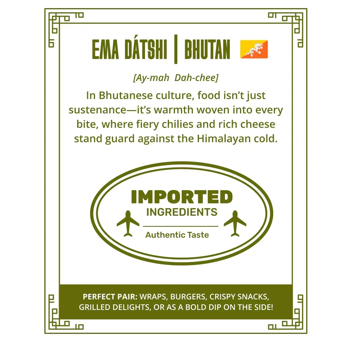 Overview: Discover a harmonious combination of spicy, savory, and creamy flavors with this international dip combo pack. Featuring Korean Gochujang, Bhutanese Ema Datshi, and Chinese Dochi (Black Bean Dip), this trio brings global taste to your table in a ready-to-eat format.