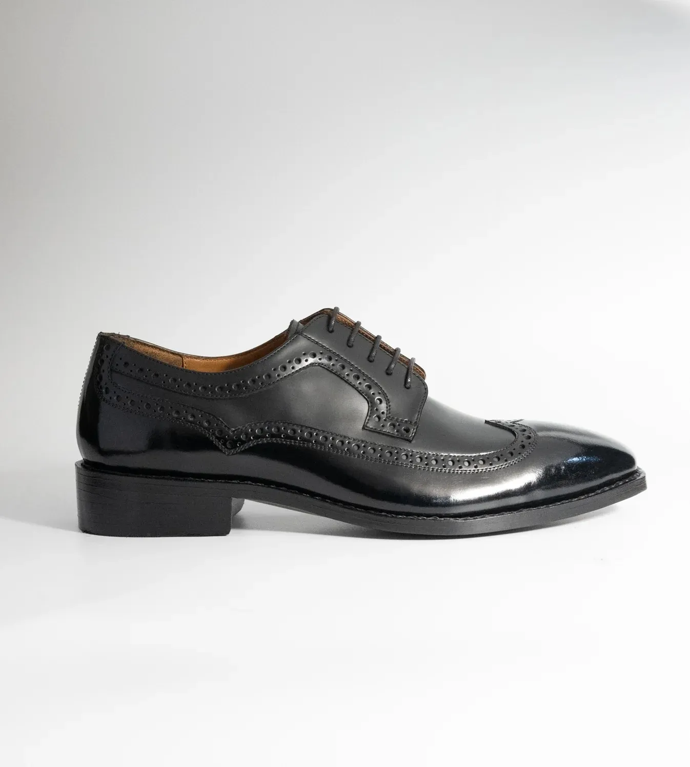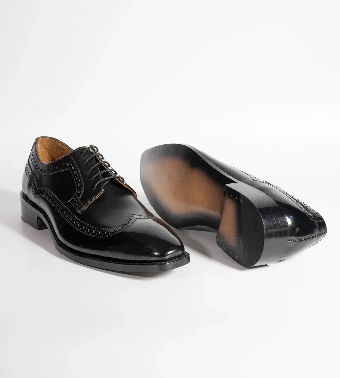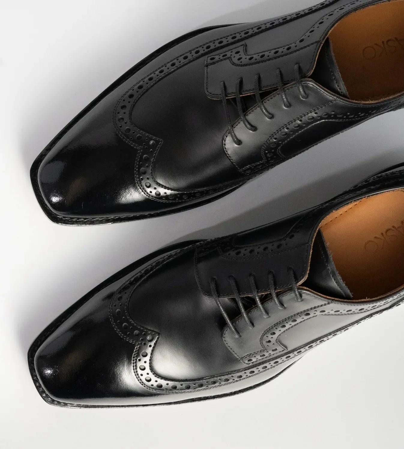 Overview: Experience timeless elegance with the Michigan Black Calf Chisel Toe Wingtip Derby Shoe. Crafted from the finest premium calf leather, this shoe combines sophistication, comfort, and durability in a single masterpiece. Its classic wingtip design exudes refinement, perfect for both formal and semi-formal occasions.