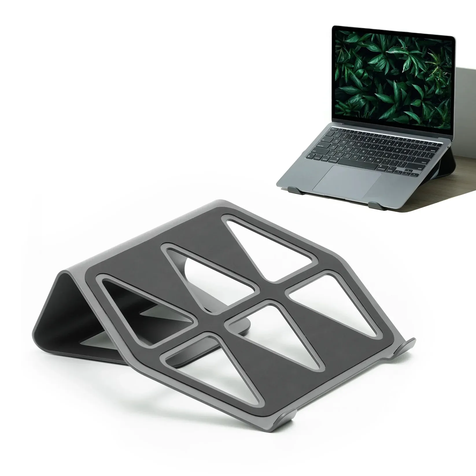 Overview: Upgrade your workspace with the FACET Laptop Stand, designed with the unique TRI design language inspired by triangular structural architecture. Built to provide stability, durability, and style, this stand ensures ergonomic comfort while enhancing your desk setup.