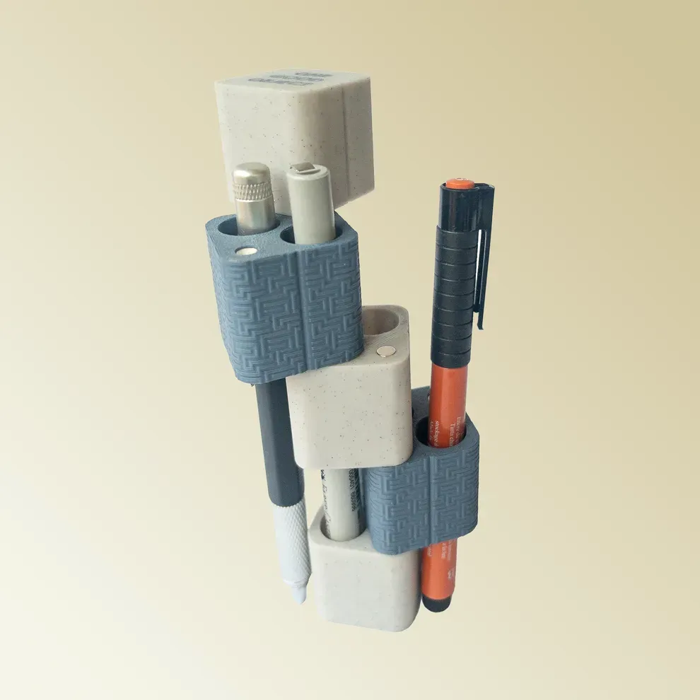 A sculptural, modular pen holder designed to bring structure and style to your desk while keeping essentials neatly organized.