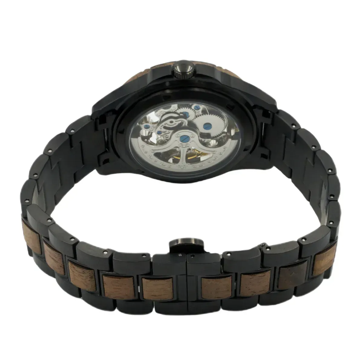 Terra embodies raw strength and natural balance, blending exposed mechanical precision with the grounded warmth of tigerwood.