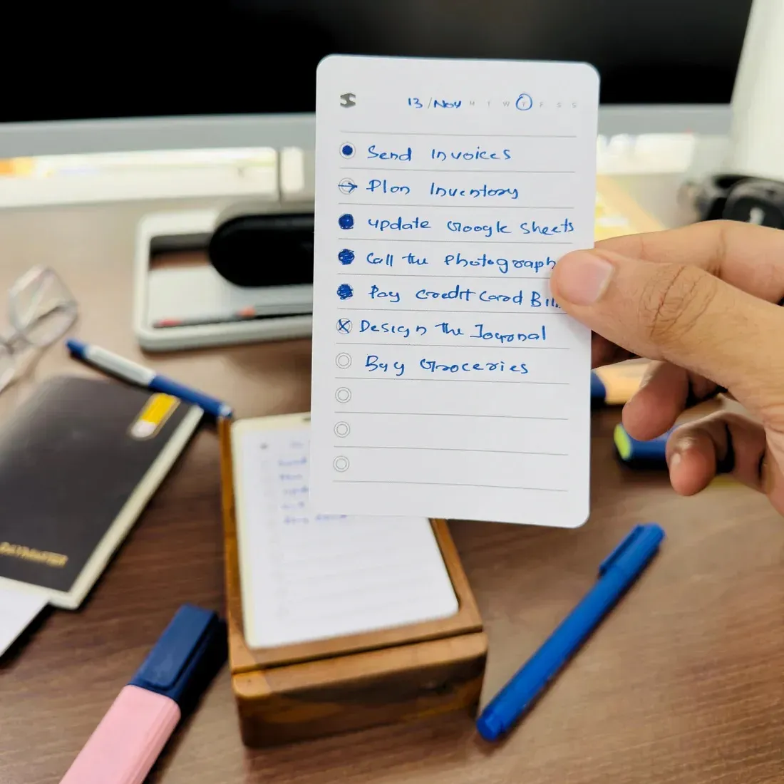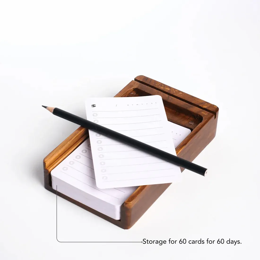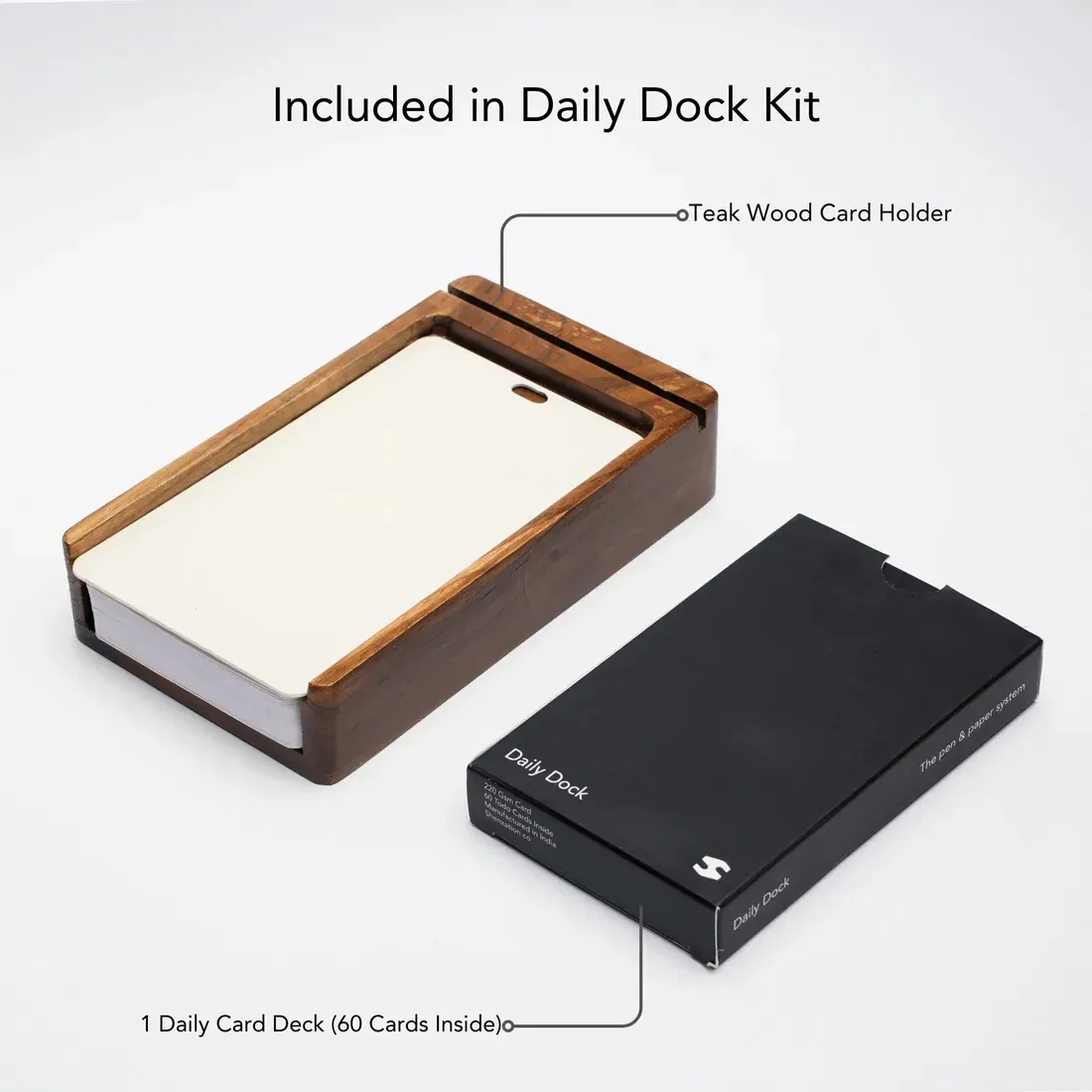 With a handcrafted teak dock and 60 premium daily cards, it turns your desk into a mission control for getting things done.