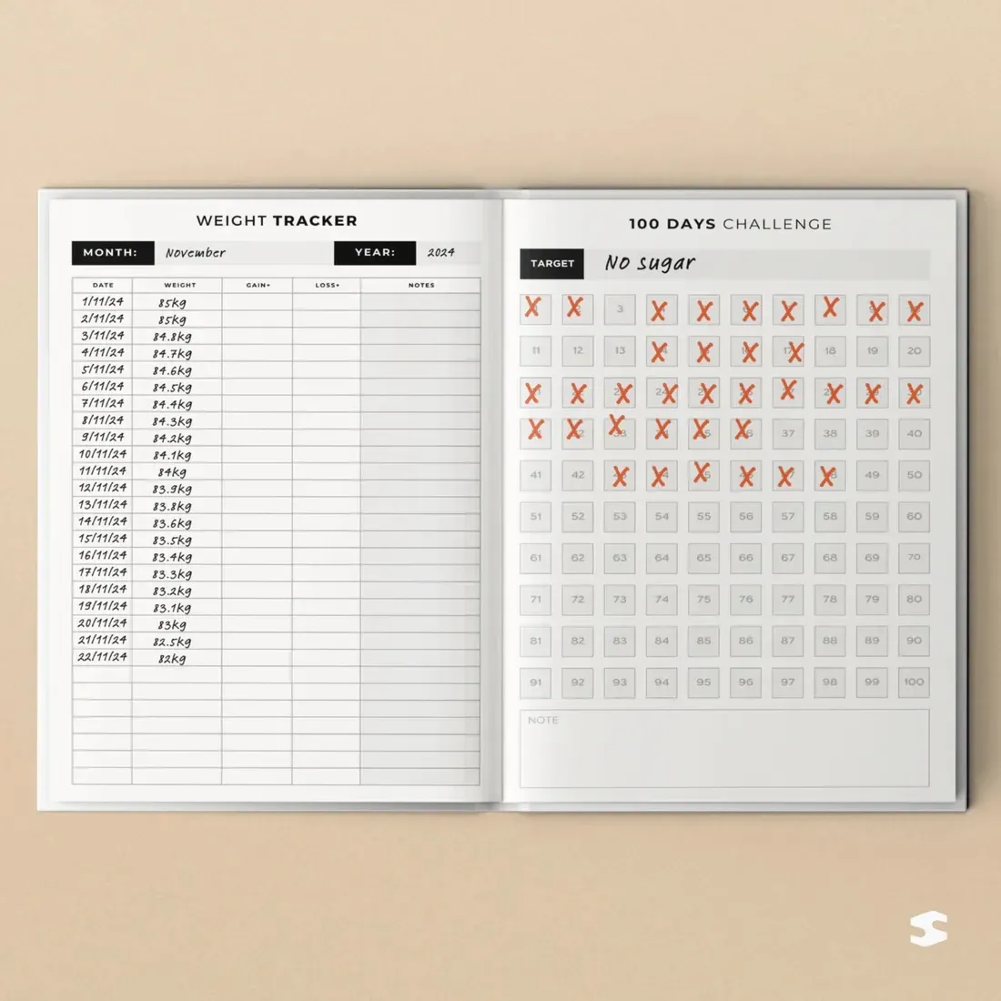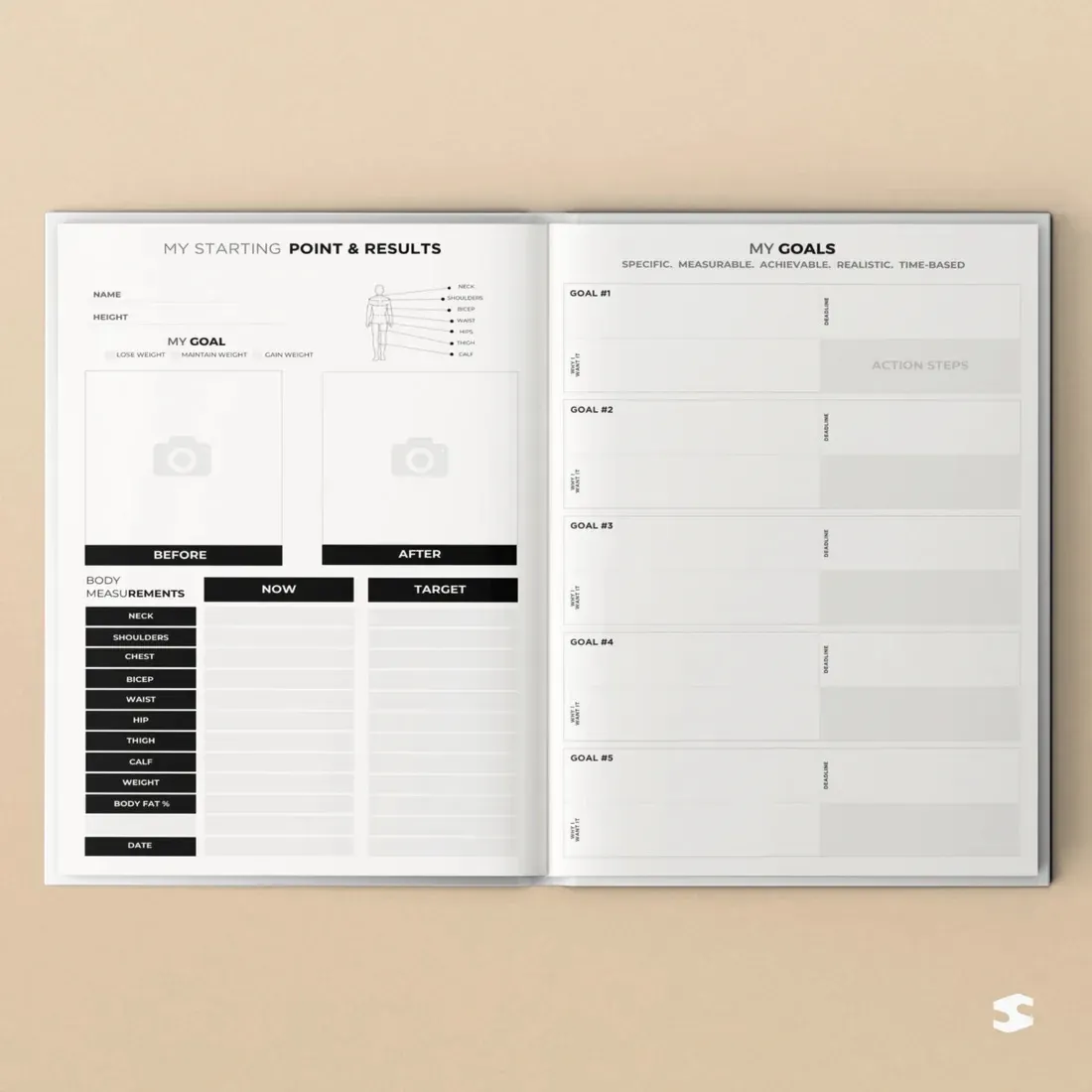 Perfect For: Fitness enthusiasts, beginners starting their health journey, or anyone who wants to stay organized while working toward a healthier lifestyle.