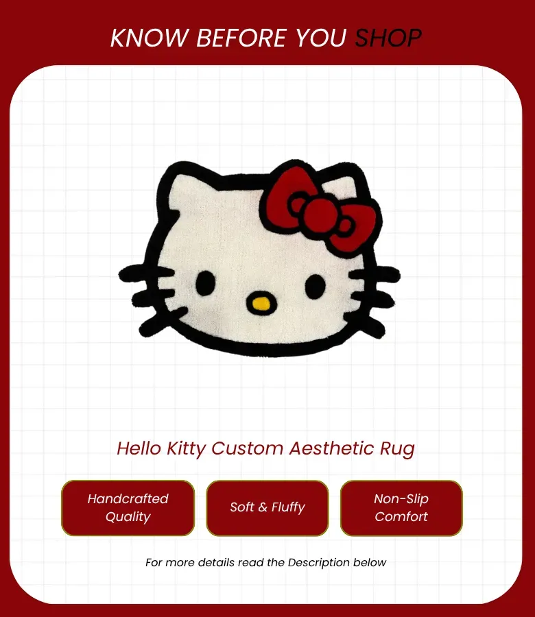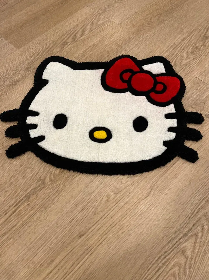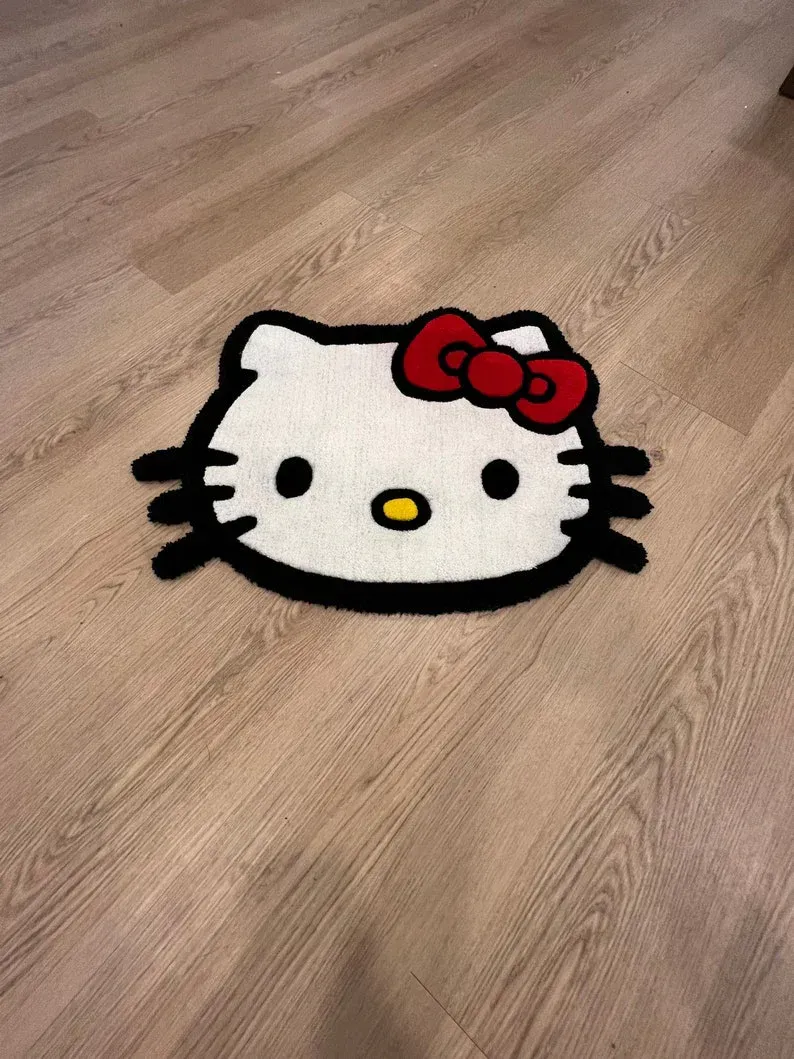 A hand-tufted Hello Kitty rug crafted in premium wool — soft, fluffy, and irresistibly aesthetic.