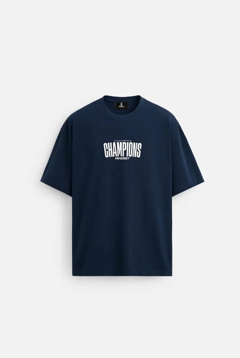 The CHAMPIONS MINDSET Oversized Tee is built for those who think differently, push past limits, and walk in with unapologetic confidence. Made from 100% premium cotton at 240 GSM, this navy blue oversized fit delivers comfort, strength, and a statement that can’t be ignored.