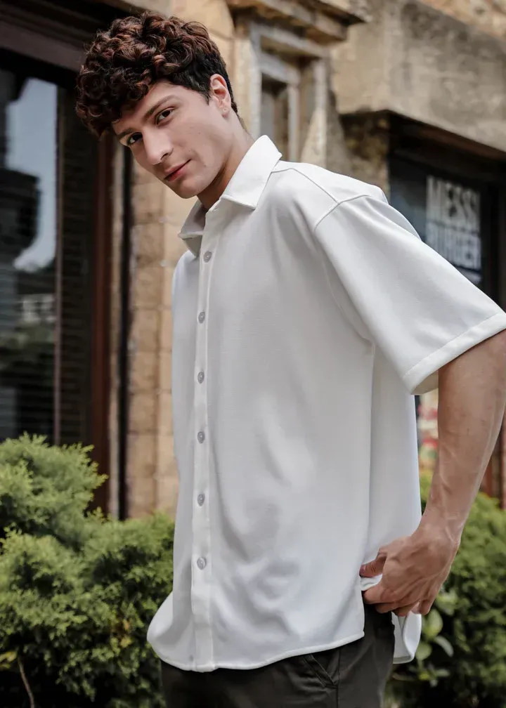 Clean lines, relaxed fit, and a textured cotton-spandex blend – the Solid Cotton Blend Oversized Shirt Frost is tailored for comfort with a Tokiké twist. Minimal yet versatile, it’s your go-to for effortless styling.
