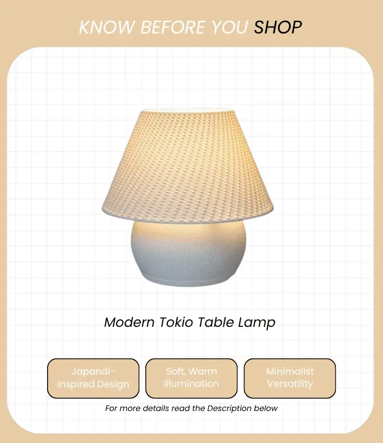 The Modern Tokio Table Lamp blends Japanese and Scandinavian design into a serene, minimalist piece. Offering soft ambient light, it’s perfect for bedside tables, desks, or cozy reading nooks, adding both function and timeless style to any space.